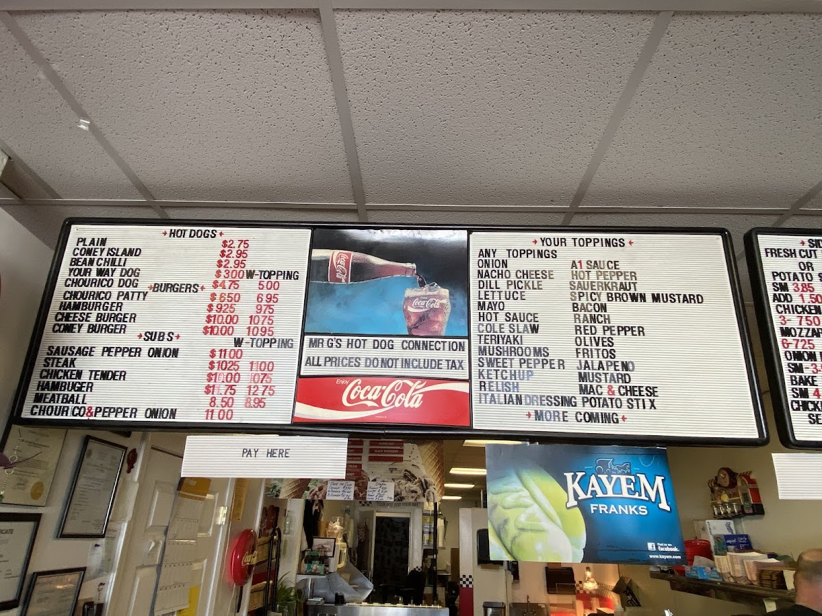 Mr G's Hot Dog Connection Menu
